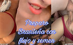 63- ❤️PREPARO BRASILEÑA CON FLUJO Y SEMEN 💦🍆🔥❤️(Bragas sucias /crema/semen en coño y bragas/follar) Vídeo de 9’ 27” donde te muestro unas bragas brasileñas que voy a preparar para su dueño. Las froto contra mi coño varios días, y te muestro como se van manchando de crema de mi coñito. Para terminarlas, follo con mi pareja hasta que me llena de leche el coñito, entonces te muestro como se llena bien. Son solo 16€.